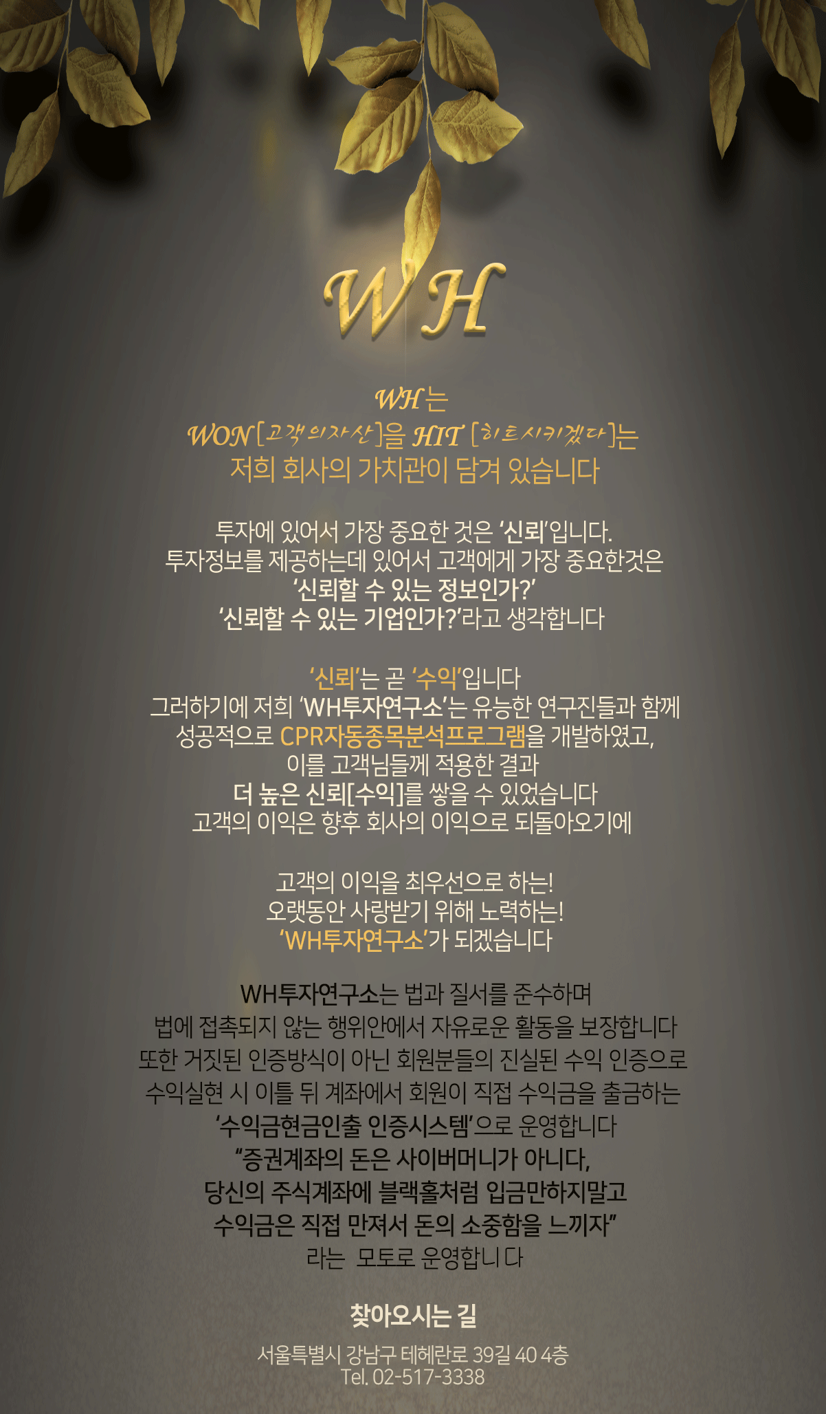 WH투자연구소 - 업계 최초 빅데이터 기술에 금융공학을 접목한 CPR시스템