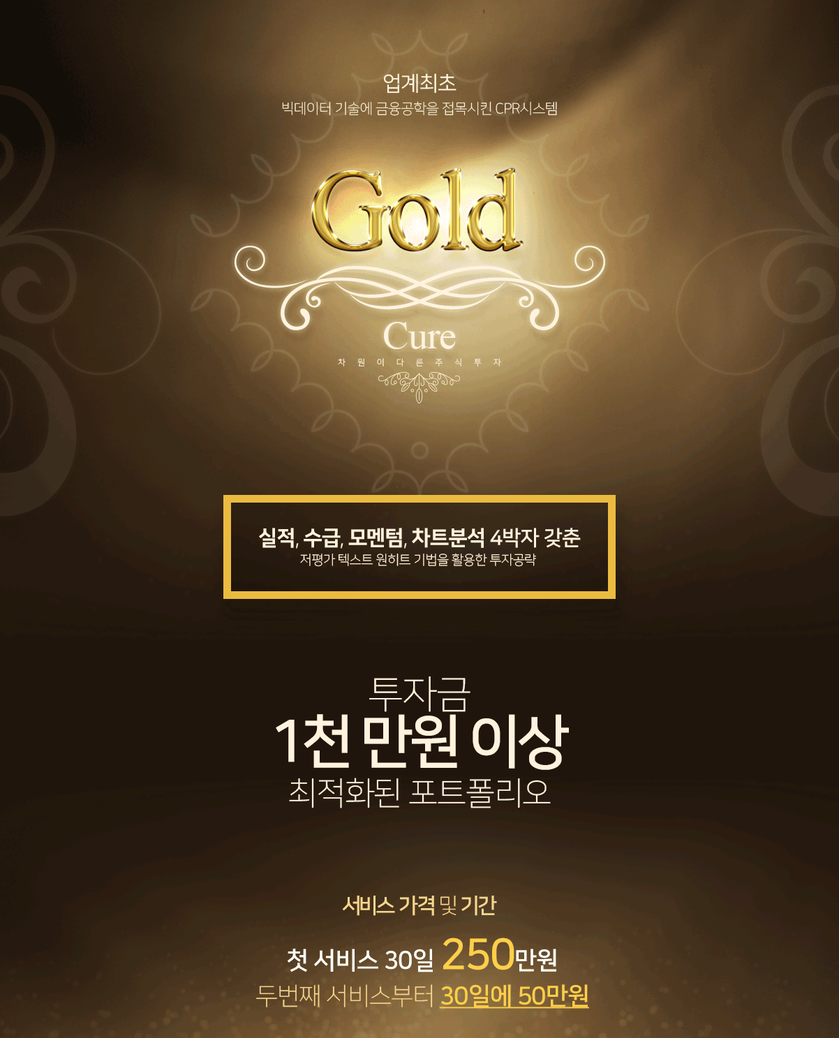 - - GOLD큐어 서비스의 첫 서비스 기간은 30일이며 이후 추가 연장시 서비스 기간은 30일입니다.