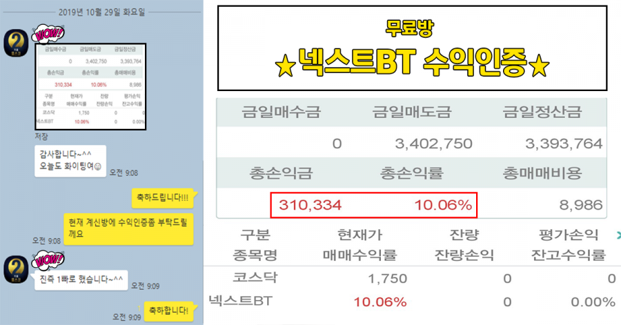 넥스트BT 수익인증 페이지 정보 작성자 WH투자연구소 작성일19-10-29 13:47 조회10,962회 댓글0건 관련링크 목록 본문 넥스트BT 오늘 장초에 시원하게 시세나옴저점으로도 추가 비중 실어서 다들 최소 10%이상씩은 수익 나셨을 겁니다!비중도 실어서 수익금도 짭잘하구요~!오늘도 무패행진 해떵~~~ 댓글목록 등록된 댓글이 없습니다. 목록