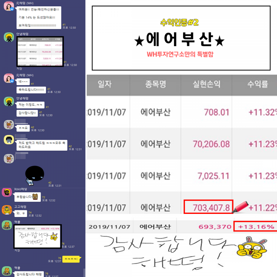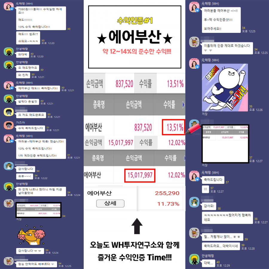 오늘 점심시간 실시간 방송 중에 에어부산 급등해서 7000원 돌파하는 것 실시간으로 리딩주시면서 매도사인 나왔는데~ 늦게 보더라도 최소 10% 이상의 수익!!!