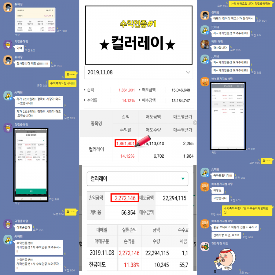 주주님들도 신이 나서 실시간으로 수익인증해주셨네요ㅎㅎㅎㅎ