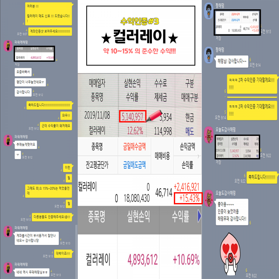 주주님들도 신이 나서 실시간으로 수익인증해주셨네요ㅎㅎㅎㅎ