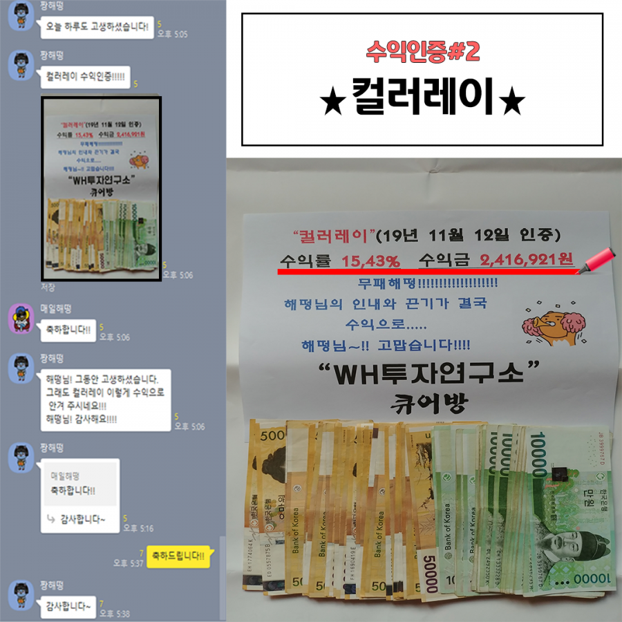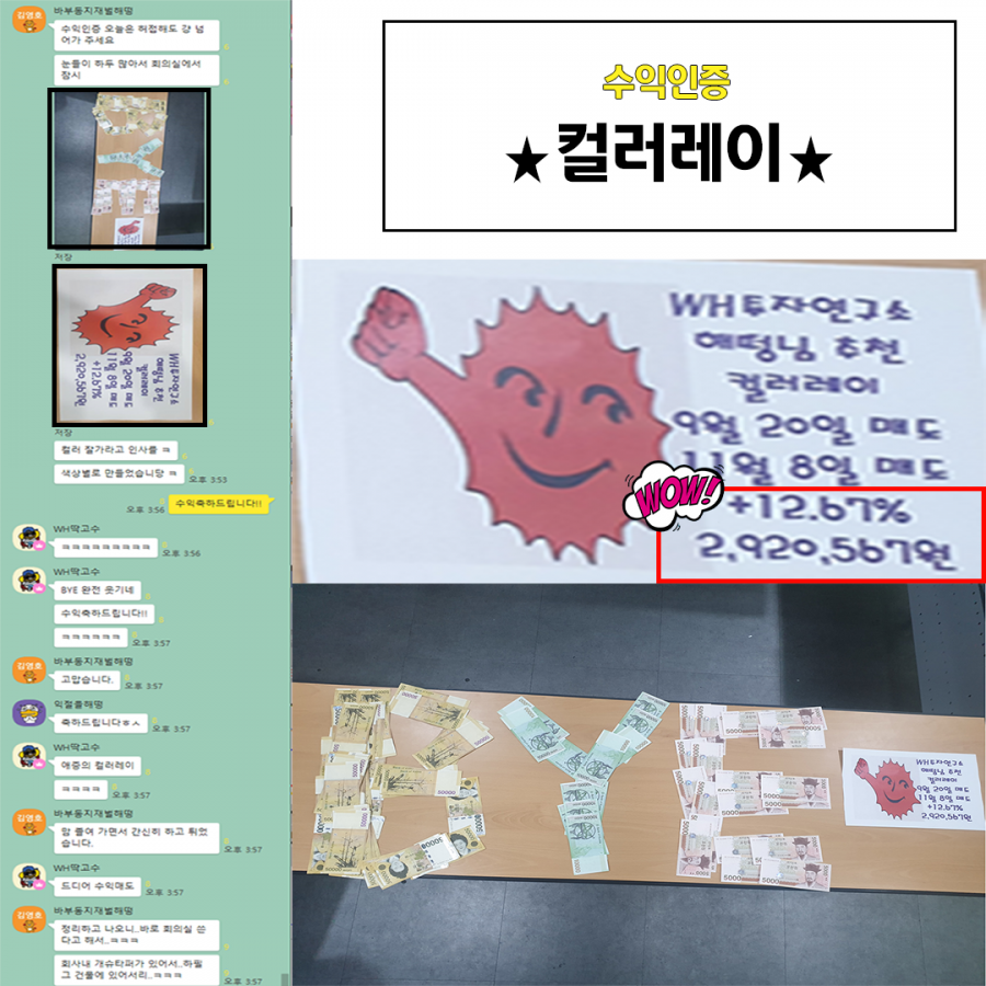 컬러레이 수익현금인증! 페이지 정보 작성자 WH투자연구소 작성일19-11-12 18:15 조회10,230회 댓글0건 관련링크 목록 본문 애증의 컬러레이!수익매도를 하고 현금 인증들 해주셨네요~ 컬러레이 잘 가라고 현금으로 "BYE" 만들어 주신분도 계시고~돈다발 그대로 인증해주신 분도 계시네요비중 크게 실었던 만큼 수익금도 꽤되는데오늘 인증해주신분들은240만원에 290만원대~모두 축하드립니다!!! 댓글목록 등록된 댓글이 없습니다. 목록