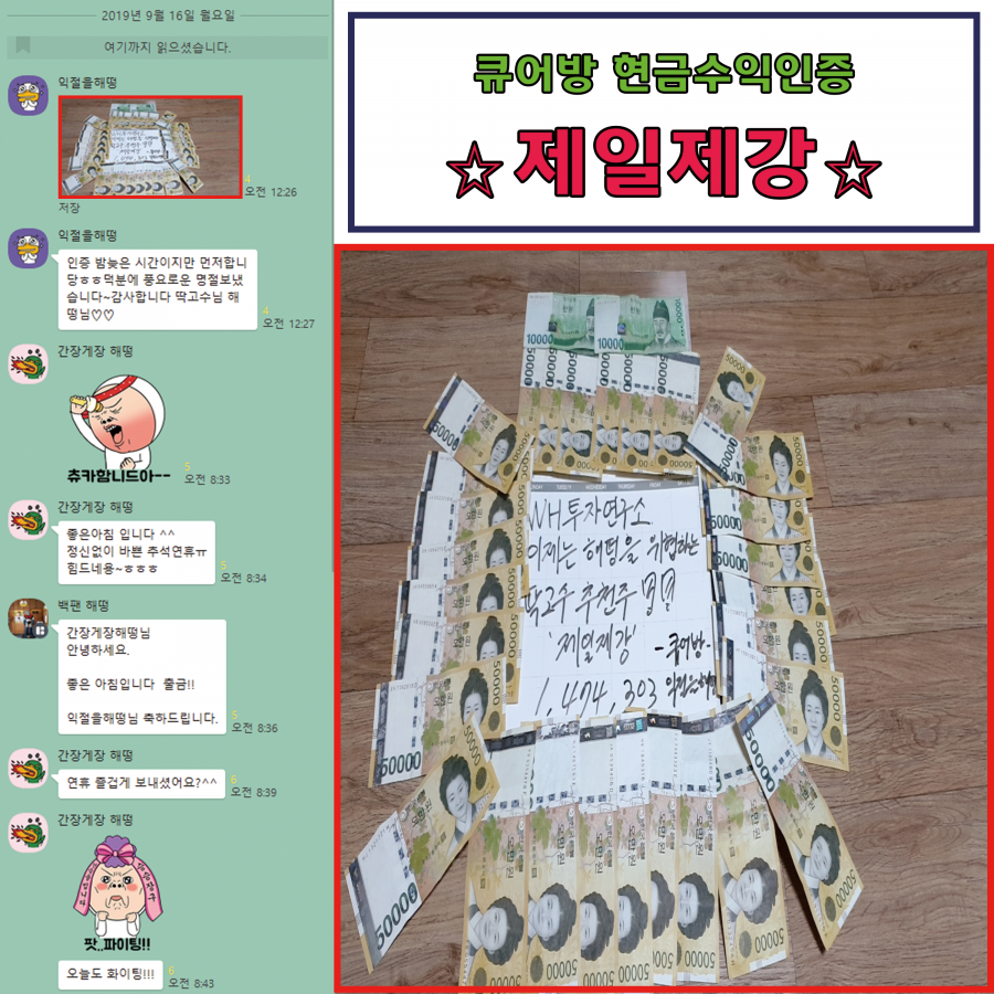 제일제강 수익현금 인증! 페이지 정보 작성자 WH투자연구소 작성일19-09-16 20:17 조회10,148회 댓글0건 관련링크 목록 본문 이번에 큐어방에서 단기로 들어간 제일제강!경영권 분쟁으로 해서 주가 계속 올랐죠~?익절을해떵님 수익금만해도 147만원이 넘어가니 5만원짜리로 뽑으셨군요ㅎㅎㅎㅎ축하드립니다~ 댓글목록 등록된 댓글이 없습니다. 목록