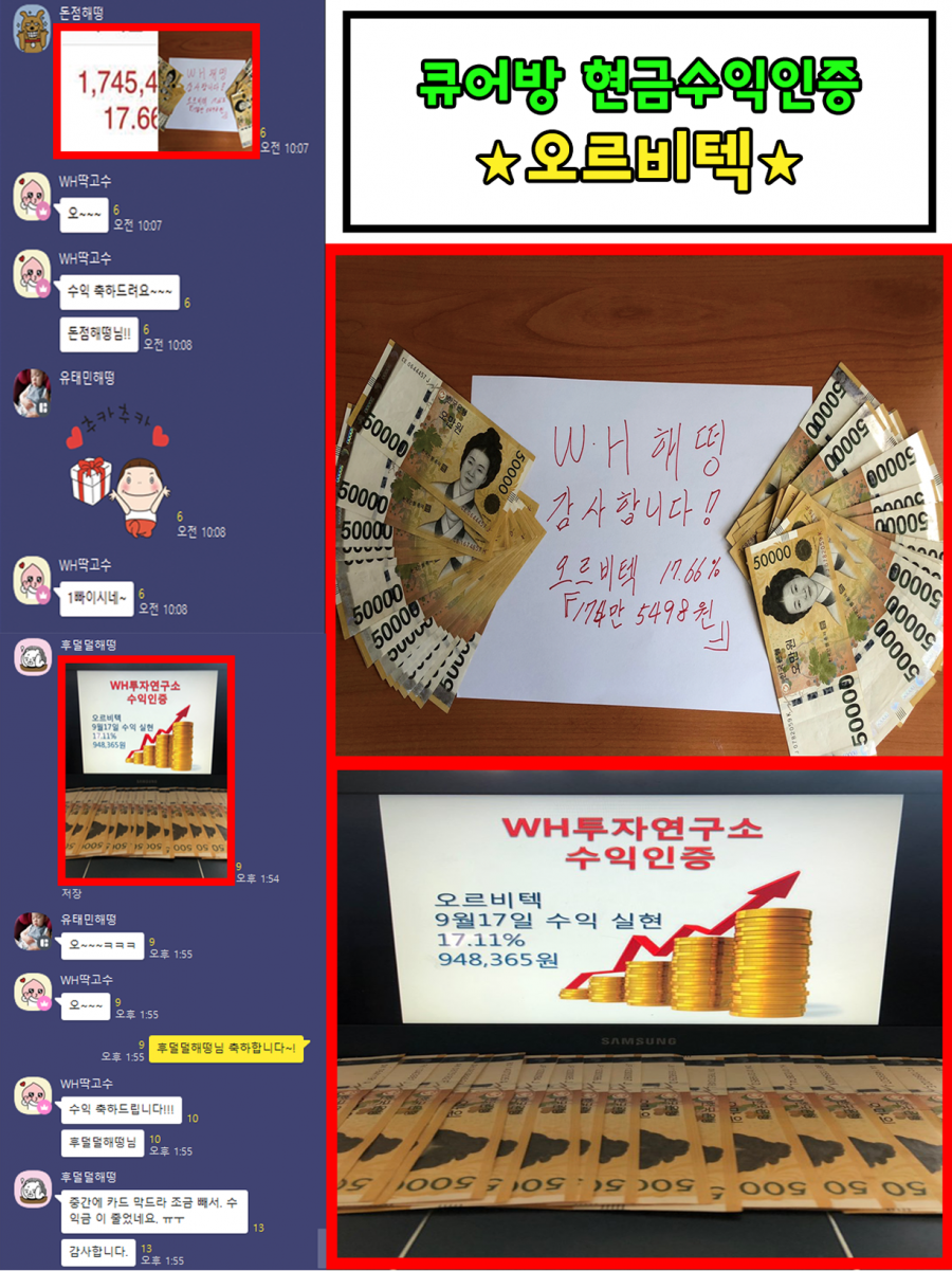 ▶️오늘 큐어방에서 오르비텍 2차 수익인증을 하였습니다!!