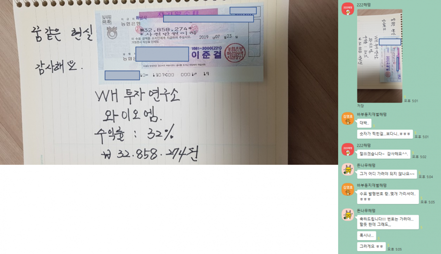 수익금인증샷 페이지 정보 작성자 WH투자연구소 작성일19-07-24 18:13 조회9,652회 댓글0건 관련링크 목록 본문 222해떵님 수익금인증샷!!!! 감사드리구요~축하드립니다!!!아무리 전문가분들이랑 같은방 주주님들을 신뢰하셔도....수표는 좀 가리고 인증해 주세요...ㅎㅎㅎㅎㅎㅎㅎ 댓글목록 등록된 댓글이 없습니다. 목록